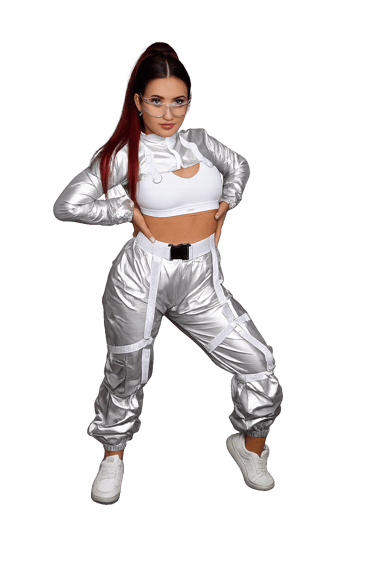 Distinción, brillo y presencia futurista. Con un vestuario plateado que refleja la luz en cada movimiento, esta reina elegante se encarga de entregar copas, accesorios o recibir a tus invitados con glamour. Un personaje diseñado para impactar y elevar la experiencia de tu evento desde el primer segundo.