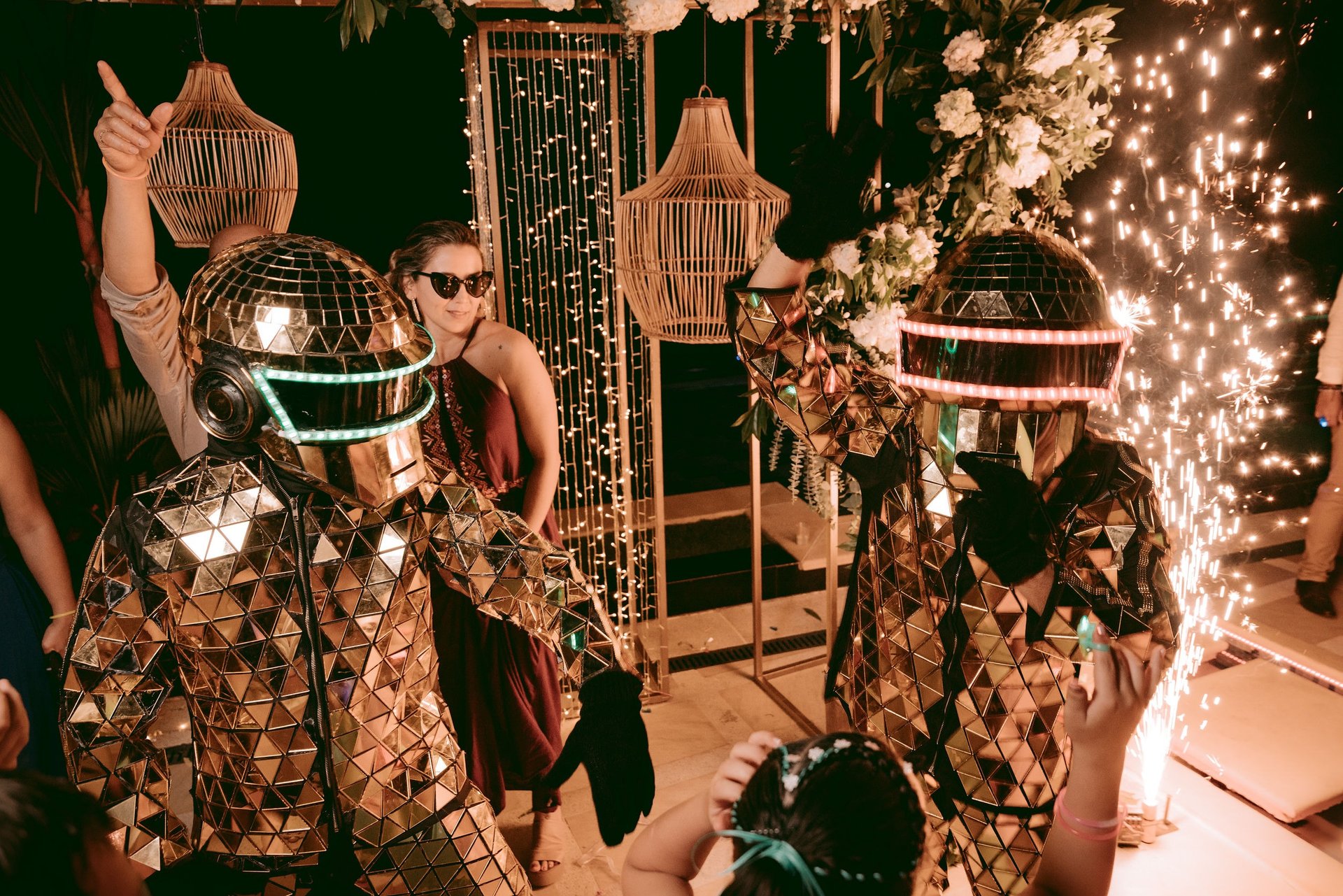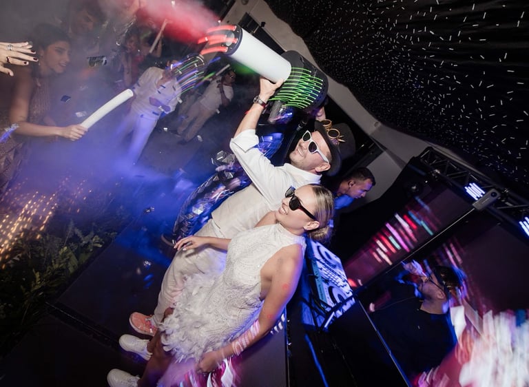 Integramos efectos visuales y sensoriales de alta calidad, como humo, CO2, luces robóticas y más, para elevar el impacto de cada presentación y dejar huella en tus invitados.